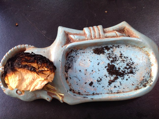 La rose brûlée ainsi n’est que pour bien faire comprendre de quoi il s’agit. En réalité, il faut brûler avec la pince, pétale par pétale, car le feu prend mal.