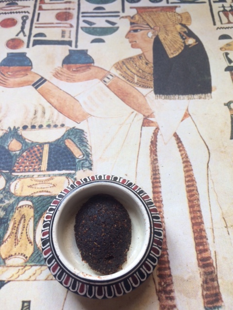 Le kyphi, je le connais bien, je le pratique très régulièrement, et il doit être le produit le plus vendu de ma boutique de par le monde. Pour autant, un kyphi comme celui-là, je n’en avais encore jamais vu ni fait. Effectivement, sur une base d’ingrédients identiques, le kyphi de Damocrates s’est payé le luxe de la nouveauté, m’a surprise et contrainte à l’adaptation pour le réussir.