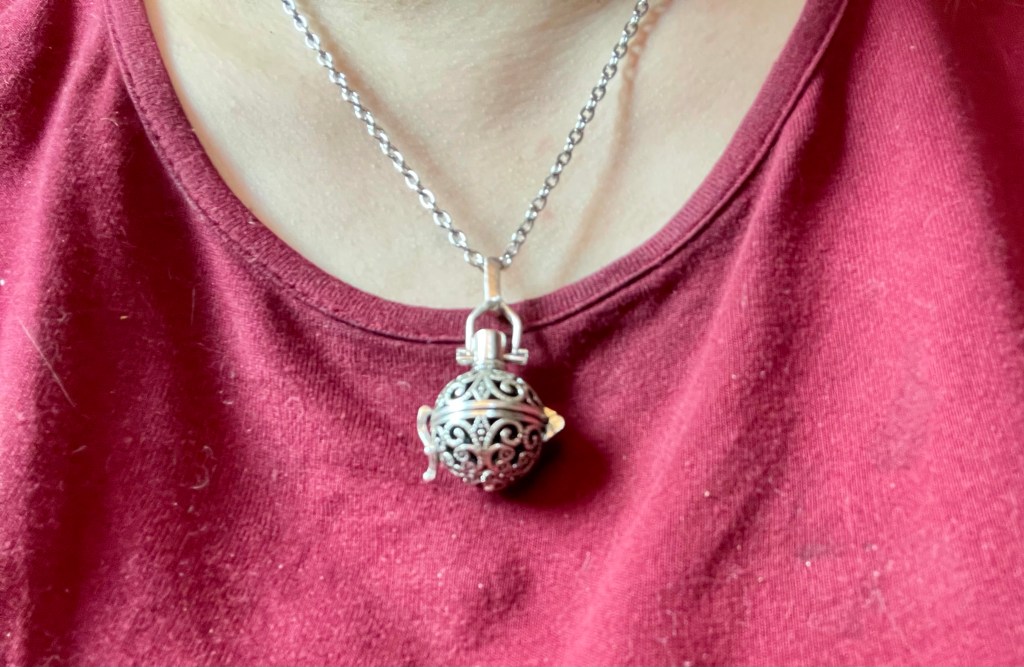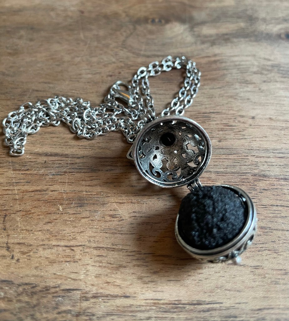 Il se compose d’une chaîne avec un bijou cage contenant une boule de pâte dont la recette était destinée à une riche maison – par la présence des musc et ambre gris, matières premières qui ont toujours été les plus chères de la parfumerie.