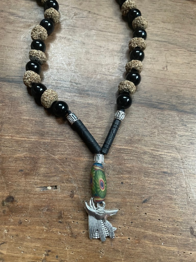 Sur cette base, en employant cette technique ancestrale, j’ai conçu plusieurs autres chapelets ou bijoux originaux, mais toujours en lien avec la botanique mythologique ou le patrimoine des civilisations.