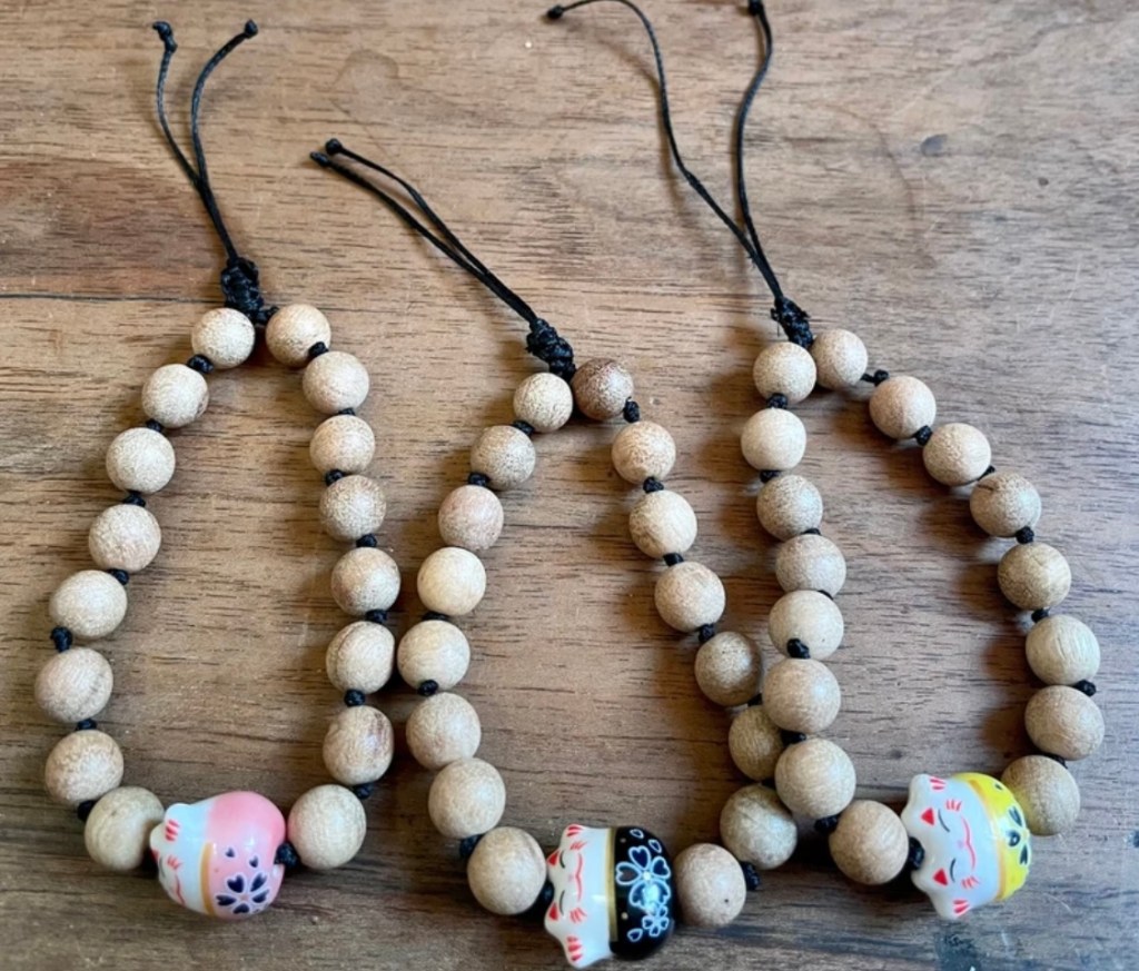 Mais comme c’est un bois particulièrement sacré et lié à la culture japonaise – comme on le voit dans le film Totoro – j’en fais aussi des bracelets Maneki Neko, dont la tradition, purement japonaise, s’apparente plus au shintoïsme.