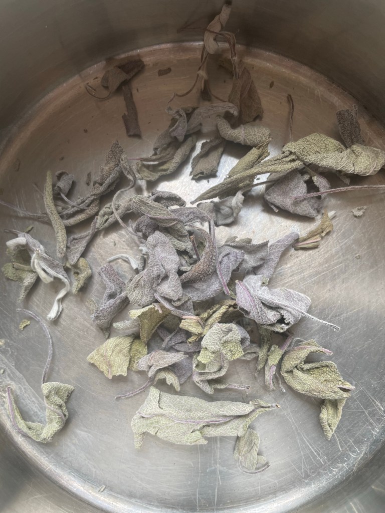 – La sauge est anti bactérienne et anti inflammatoire. Elle ne présente pas de danger mais est déconseillée aux femmes enceintes, allaitantes et aux épileptiques (il est à remarquer néanmoins qu’on ne l’utilise ici qu’en gargarisme et non en interne !)