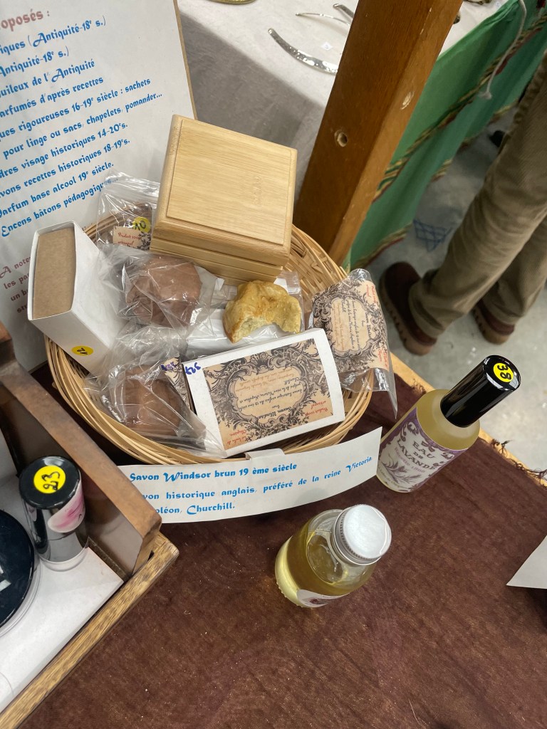 Un catalogue vivant avec lequel je viens chaque fois avec mon stand et que ma clientèle et mes suiveurs sont venus chercher, au minimum pour découvrir les parfums d’autrefois, qu’on concevait à la fois autrement, et sans chimie. Car au Marché de l’Histoire, c’est le produit historique qui est attendu, recherché, estimé.