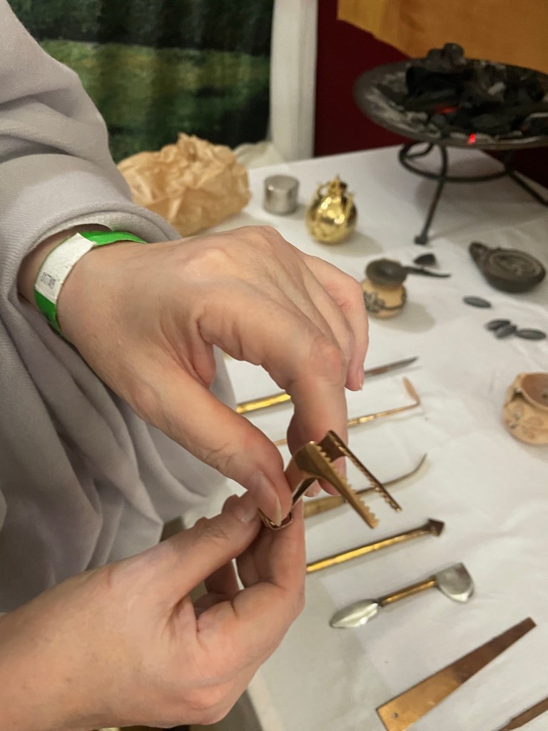 Et si sur mon stand, le fait n’est pas mis en évidence car l’accent est mis sur les odeurs et les belles façons anciennes et naturelles de les concevoir, dans les démonstrations et ateliers pédagogiques de Scalpel et Matula, les produits parfumés du Labo de Cléopâtre reprennent la vraie fonction qu’ils ont eue dans l’histoire, lors de manifestations où on raconte comment on les utilisait.