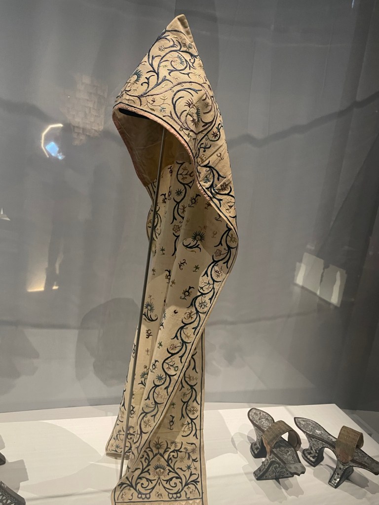 Enfin, le parfum, c’est aussi l’intimité conjugale : si l’exposition présente des vêtements entièrement ornés de fleurs de jasmin qui durent être impressionnants de beauté visuelle et olfactive quand ils étaient encore frais, il est connu aussi que des rituels de beauté parfumés accompagnent l’union des époux jusque dans le choix de l’encens « coïtant » à brûler dans la chambre à coucher ou même la toilette minutieuse, secrète et intime de la femme durant les préparatifs de la noce…