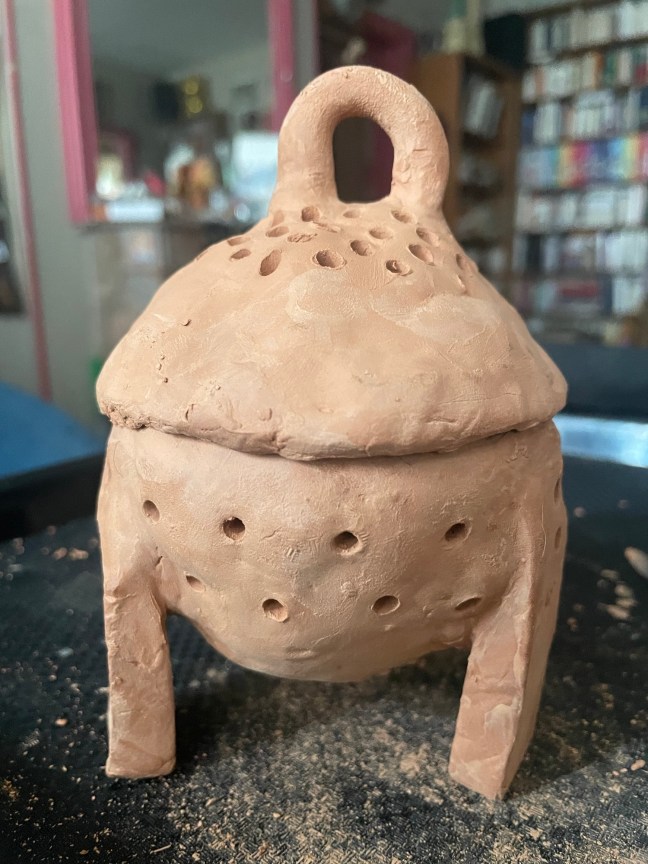 On a quelque chose de ressemblant avec les lampes Merlin qui diffusent le cade qu’on brûle toujours dans le sud de la France; à ces différences près qu’il y a beaucoup moins de trous, qu’il est inutile de souffler dessus, que le bois odorant se présente en poudre, et sous la forme d’une pyramide qu’on réalise grâce à un moule. Grâce à ça, le feu brûle sans discontinuer et l’odeur se diffuse doucement : c’est plus efficace, mais plus de 3000 ans se sont écoulés depuis l’époque de notre premier brûleur…