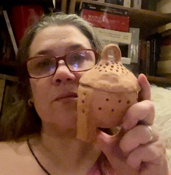 Au final, étant parvenue à maintenir un feu à partir du système de mon brûleur mycénien, et ayant eu des effets dont je reconnais la valeur sans pour autant savoir si c’était la destination de cet objet, je pense poursuivre l’aventure en utilisant cette fois des plantes européennes connues depuis fort longtemps de la civilisation grecque. D’emblée, je pense à l’armoise et à l’absinthe qui ont la faculté de provoquer des rêves, mais on pourrait aussi penser au tussilage, que les Anciens utilisaient déjà pour calmer la toux, et qu’on emploie toujours pour cet usage.