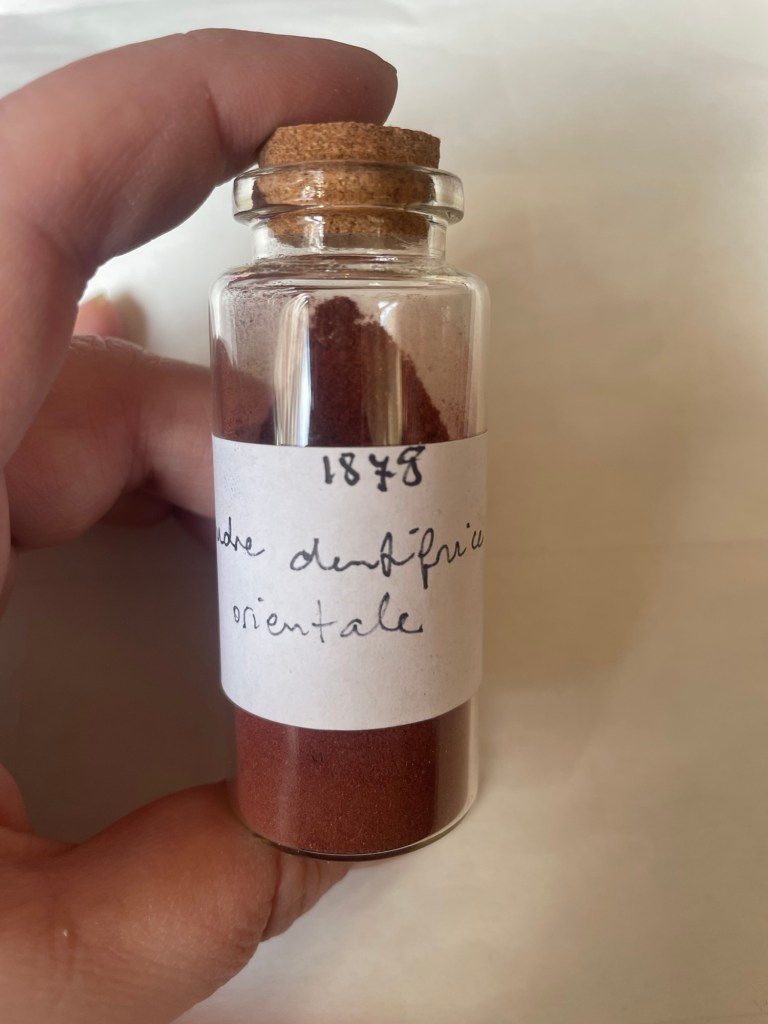 - Poudre dentifrice orientale – 1878 M. Pradal. Nouveau manuel du parfumeur.
