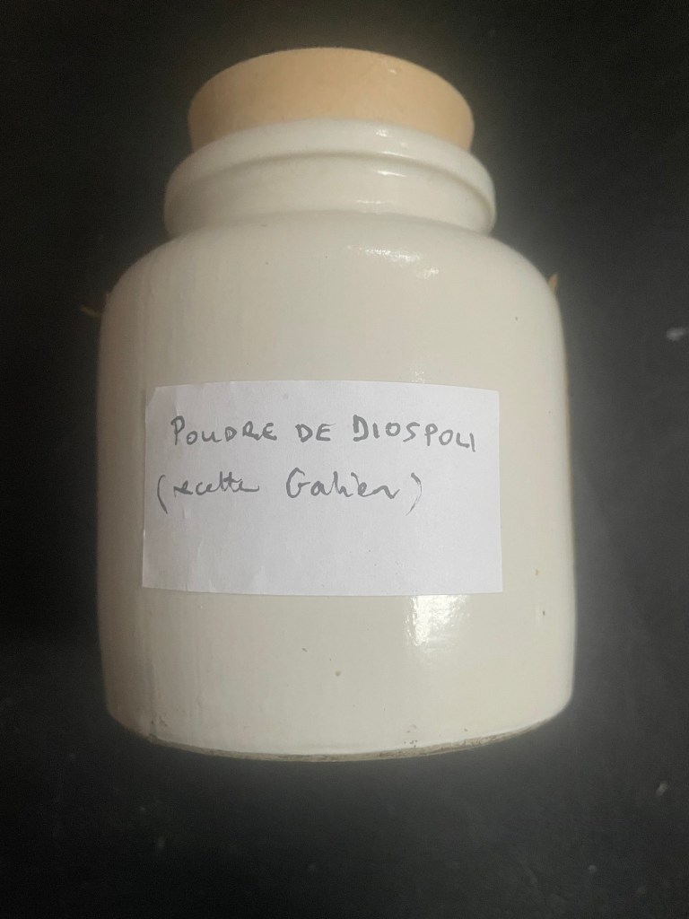 L’idée de refaire des médicaments anciens a germé très tôt dans mon esprit parce qu’en cherchant des recettes variées de kyphis – puisqu’il en existe plusieurs depuis l’Egypte ancienne – j’étais tombée sur un ouvrage français de pharmacopée du XVIII ème siècle qui m’en avait fourni une et permis de la ressusciter. Pour autant, c’était une recette plus ancienne que les médecins avaient pris soin de conserver et transmettre aussi longtemps qu’ils en avaient eu l’utilité.