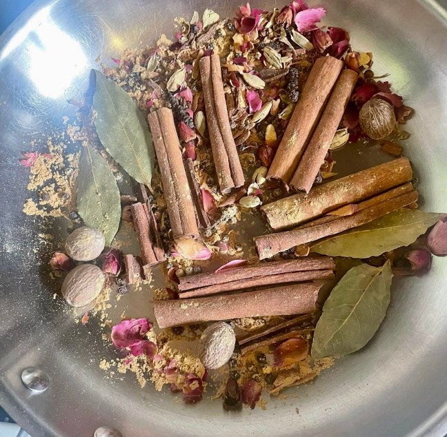 Je trouve les mélanges d’épices toujours très inspirants, ils constituent vraiment une énigme et en même temps un produit archéologique très concret, surtout quand la recette est bien détaillée. Selon moi, il est inutile de faire les mélanges que tout le monde fait : avec ma bibliothèque de recettes historiques et mon riche atelier de plantes à parfum du monde entier, il est plus intéressant d’ajouter à l’offre un mélange authentique, complexe et rigoureusement respecté pour enrichir l’offre d’une vraie recette ancienne.