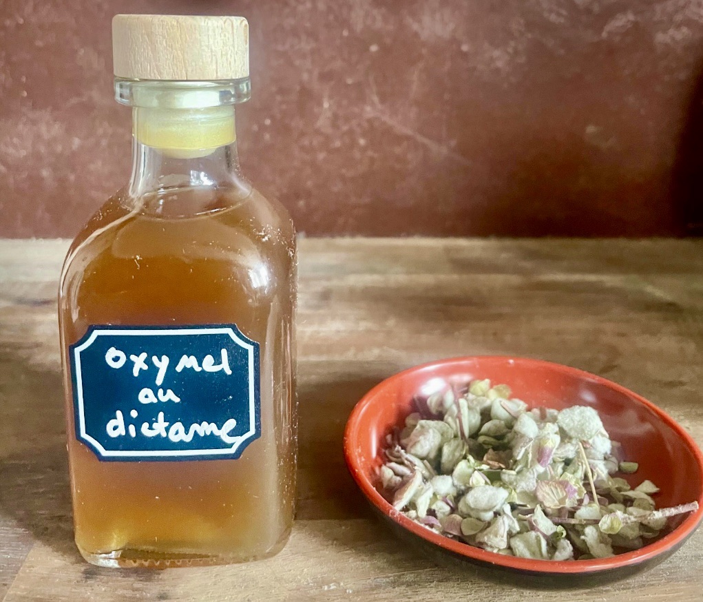 L’oxymel que je vous propose mêle vinaigre de cidre, miel de sapin grec et dictame de Crête. J’ai voulu ce mélange pour vous offrir un Oxymel à saveur grecque authentique et rare, cumulant en plus 2 remèdes médicinaux de l’Antiquité. Un remède médicinal qui a fait son retour après la crise économique en Grèce auprès des gens qui n’avaient plus les moyens de se soigner – tant la médecine populaire fait partie de la mémoire d’une nation, même si elle est très ancienne –
