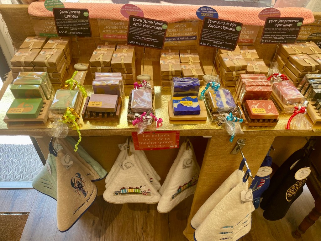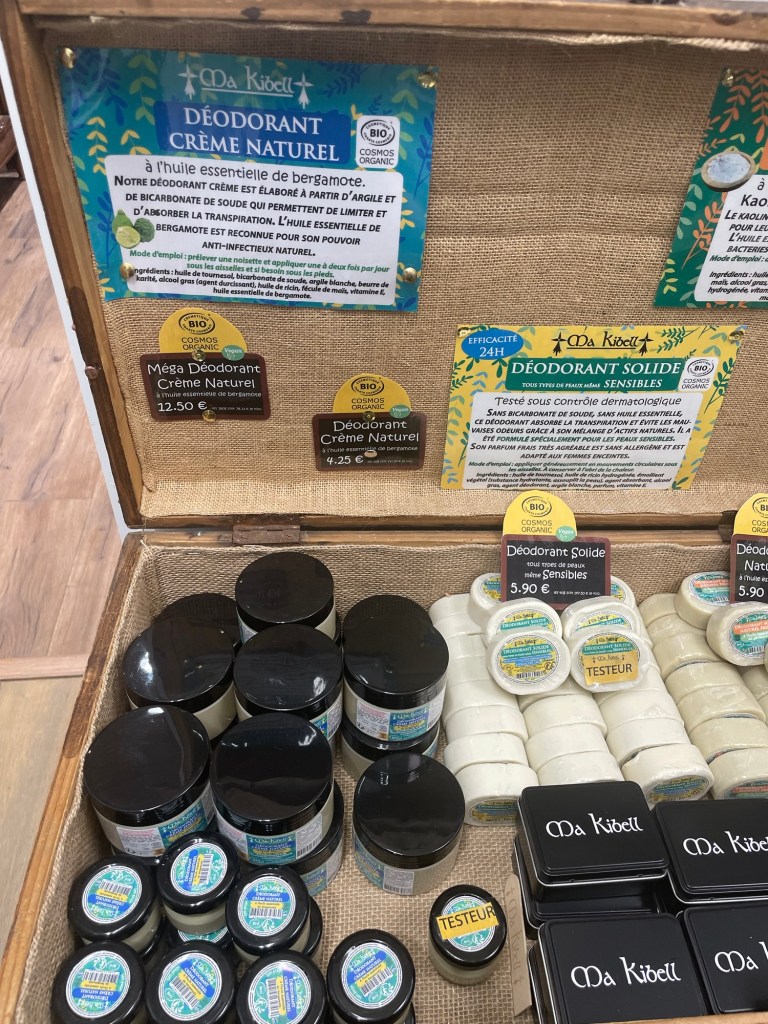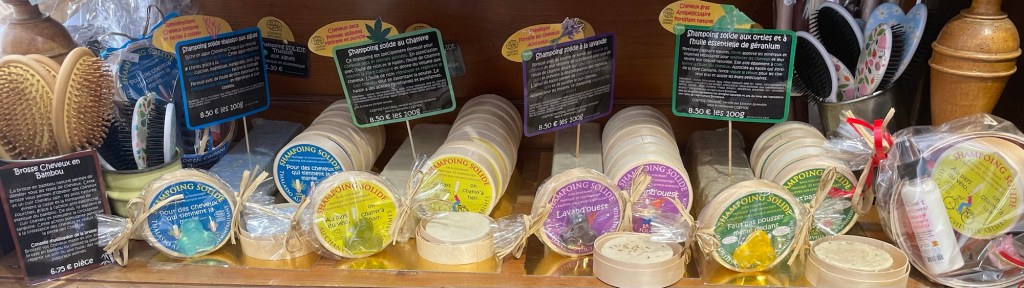 La boutique est vraiment riche : il y a un peu de tout pour le corps, le visage, l’entretien de la maison et même le soin des animaux. Des savons, shampooings, serviettes, déodorants, produits pour la vaisselle, bougies parfumées, trousses de toilette, brosses, pinces à cheveux, etc..De quoi acheter en un même endroit plein d’articles de la maison et la toilette, comme dans les drogueries d’autrefois. Et là, pas d’ambiance guindée : on se sent vite à l’aise.