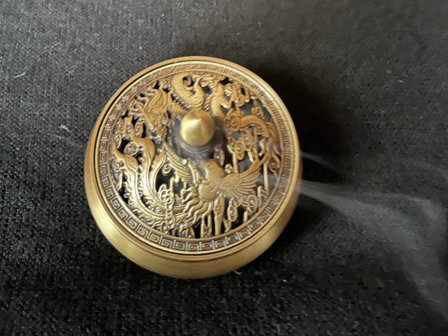 Pour m’habituer à l’usage de ce brûle-parfum, je le mets dans des endroits pratiques où je fais brûler mes plantes. Ainsi, je lui donne l’usage banal et usuel qu’il devait avoir lors de sa conception.